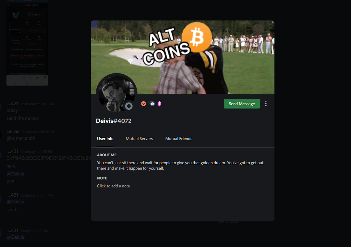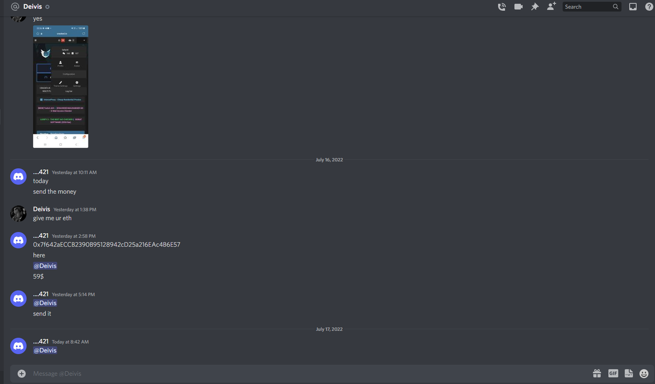 Additional Information: did a lot of transactions with this user,been dealing with him for a very long time but he keeps on ghosting me lol